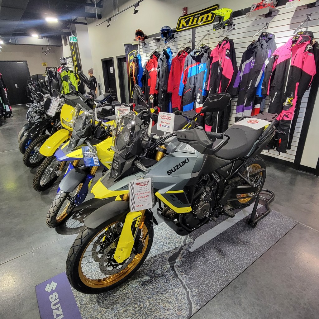 Showcasing a selection of Suzuki bikes alongside a range of Klim gear at Ralph’s Motorsports.